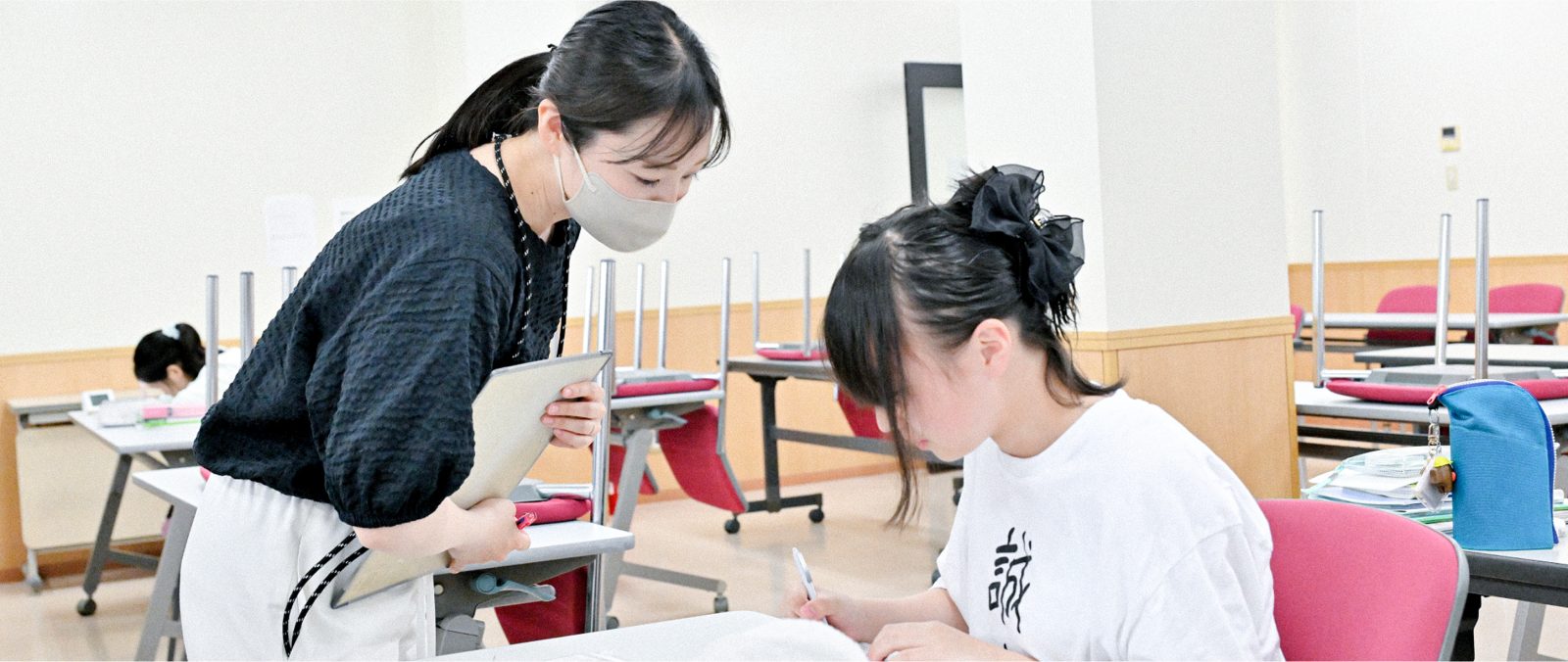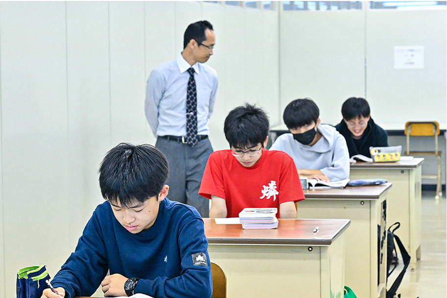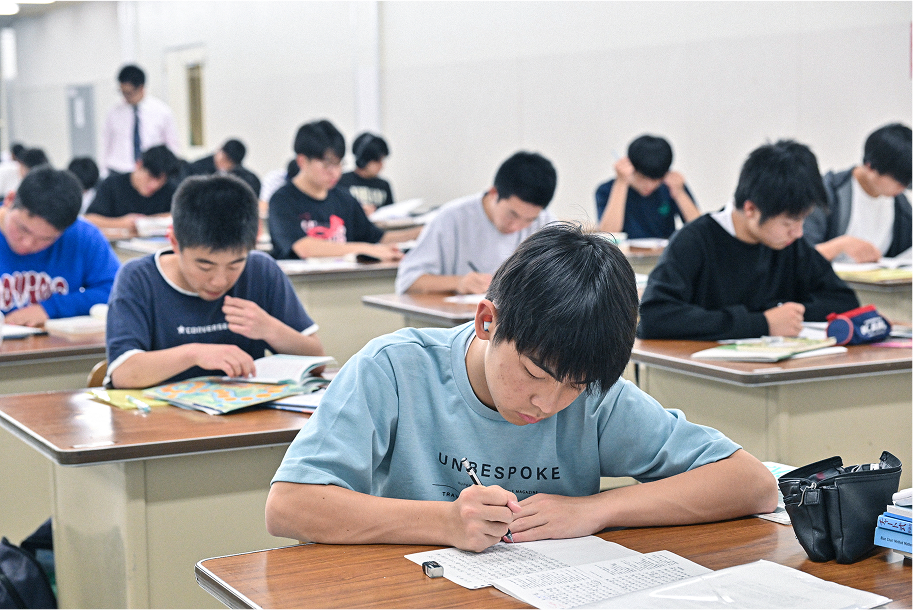 基本的な学習方法を習得し、日々の学習習慣を確立するために、学習時間を定めています。中学生・高1生は集団学習を行い、互いに助け合い励まし合い、切磋琢磨しながら、主要科目の基礎学力の定着を図っていきます。
