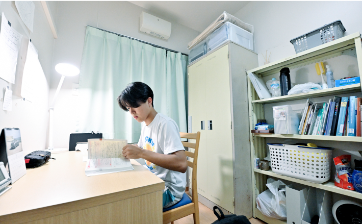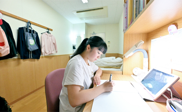 受験勉強に専念できるよう、すべて個室。特別講義や教科合宿に備え、講義室や集団学習室も備えています。静かで真剣な雰囲気は自立心を養い、一人ひとりが自覚を持って、目標へ挑むことができます。
