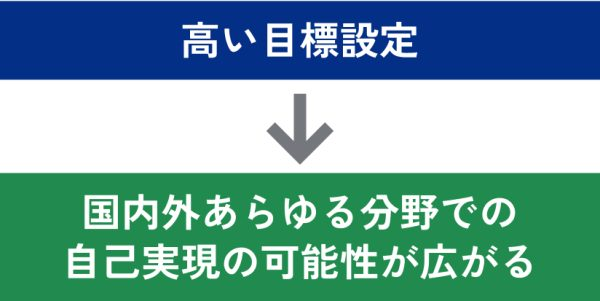 毎年、入学式で学校長は「今日から東大を目指してがんばってください。君たちには全員にその可能性があります。」と新入生に檄を飛ばします。これは東京大学にチャレンジする学力があれば、国内外どんな分野でも、自己ロマンを実現できるだけの可能性が広がるという意識づけです。学園設立当初から、「東大をめざせ」という言葉に多くの生徒たちが勇気付けられ、能力を最大限に発揮し、東大を含めた難関大学に入学していきました。卒業生の中には官界、法曹界、金融・マスコミなどのビジネス界に進んだ者や、大学の研究職あるいは医師になった者も多く、近い将来わが国のリーダーとなるような存在です。