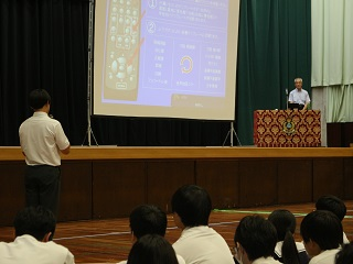 6月3日(月)、東京大学 大学院 新領域創成科学研究科 メディカル情報生命専攻 大石勝隆(おおいし かつたか)客員教授を講師に迎え、東大出前講義を中学1年生から高校2年生を対象に行いました。「体内時計と健康」という講義タイトルで、最先端の研究成果に基づいた、生物の細胞や遺伝子レベルまでの体内時計のお話を伺うことができました。朝食を摂取することで健康な一日を送ることが出来るお話など、生徒の実生活にも役立つお話で、生徒の知的好奇心が刺激される素晴らしい機会となりました。