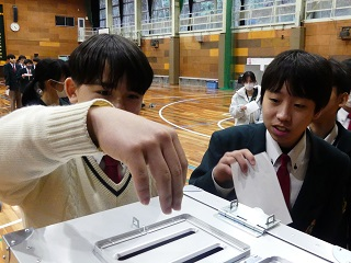 1月22日(月)、中学生徒会長選挙の演説会および投票が行われました。今回も、感染症対策などを考慮し、中学2年生は直接その場で立候補者の話を聞き、他学年は各教室からzoomで視聴という形を取りました。立候補者4名は自分が目指す生徒会像を熱心に訴え、その後、体育館にて投票が行なわれました。選挙管理委員会の生徒による厳正な開票の結果、太田悠花さんが当選しました。認証式の後、生徒会役員を決定し、3月より本格的な活動がスタートします!