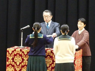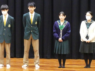 1月12日(金)、始業式に先立ち、エコノミクス甲子園県予選優勝、県アンサンブルコンテスト銀賞の表彰が行われました、また、2学期に英検1級・準1級を取得した生徒および中学で英検2級を取得した生徒の紹介もありました。その後、3学期始業式が行なわれ、校長からは「学びに主体性を持ってほしい。学業には覚悟を持って妥協しないように取り組んでほしい。チャレンジをする1年にしてほしい。」との話がありました。また、森進学副部長からは「しっかりと学んで自分たちの花を咲かせてほしい。」との話がありました。3学期は、次の学年に向けての準備期間です。しっかり計画を立てて意欲的に学習に取り組んでいきましょう!