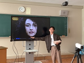 高校2年文系クラスでは、英語の授業でKNNニュースプロジェクトと題し、ニュース番組を作りました。生徒たちは5つのグループに分かれ、各グループが1つのニュース番組を作り上げました。大谷翔平選手や藤井聡太棋士の活躍、日本シリーズの結果、芸術鑑賞会の中国雑技、ノーベル平和賞受賞のイラン女性活動家、天気予報などさまざまな話題を取り上げました。今回のプロジェクトでは、データ分析を必ず組み込むようにしました。番組作成前に、福島原発処理水の海洋放出、18歳選挙権、ガソリン車と環境汚染、長期休暇のメリットデメリット、リモートワークの賛否についてクラスでアンケートをとり、その結果を専門家になりきって分析しました。生徒たちはアナウンサーやレポーター、専門家、ディレクター、カメラマンの役目を果たし、それぞれのグループが独自の色を出した良い番組が完成しました。