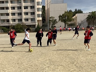 12月5日(火)、中学生のクラスマッチが開催されました。中学1年生はドッジボール、中学2年生はサッカー、ドッジビー、中学3年生はバレー、サッカー、バドミントンが実施されました。特に1学期のクラスマッチがコロナ流行で中止となった中1にとっては、これが初のクラスマッチであり、優勝したチームと教員チームによるエキシビションマッチが行われるなど、大いに盛り上がっていました。また、中2・中3も各クラスとも1学期のリベンジに燃え、熱戦を繰り広げていました。