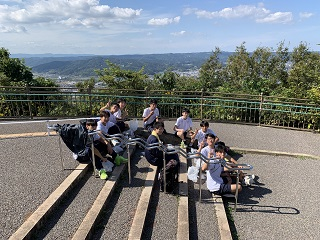 10月24日(火)、佐賀県唐津市にある鏡山を登ってきました。標高は283mですが、登りはじめの傾斜と最後の階段が結構きつかったです。展望台では虹ノ松原や唐津湾に浮かぶ島々がきれいに見えて、心地よく感じました。お弁当を食べた後は、芝生で思い思いに遊んだり、鏡山神社を参拝したりしました。好天に恵まれ、まさに英気を養った一日でした。