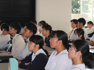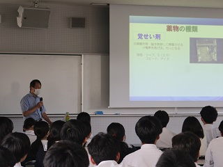 10月17日(月)、薬剤師 森勇人(もり はやと)先生を講師に迎え、薬物乱用防止教育講座を高校2年生を対象に行いました。「薬」についての知識や正しい使い方について説明していただきました。私たちが「薬物乱用」と聞いて思いうかべる大麻やMDMAといった違法の薬物だけでなく、普通の薬も使い方を誤れば「薬物乱用」になるということを知り、「薬」の怖さを知りました。