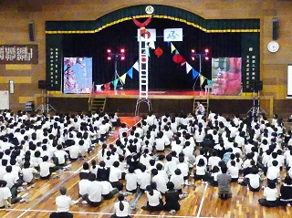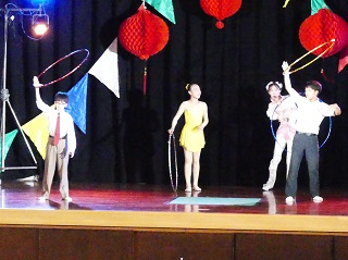 10月5日(木)、芸術鑑賞会として中国雑技団(株式会社 雅夢)による中国文化芸術夢公演が開かれました。皿回しやジャグリングなどの高難度の技が披露されただけでなく、漢字を通じて中国の文化に触れる場面や、努力することの大切さを学べる場面もあり、約2時間にわたり充実した内容でした。生徒がステージ上でフラフープに挑戦したり、観客席の中で変面が披露されるなど、生徒たちは大いに盛り上がっていました。