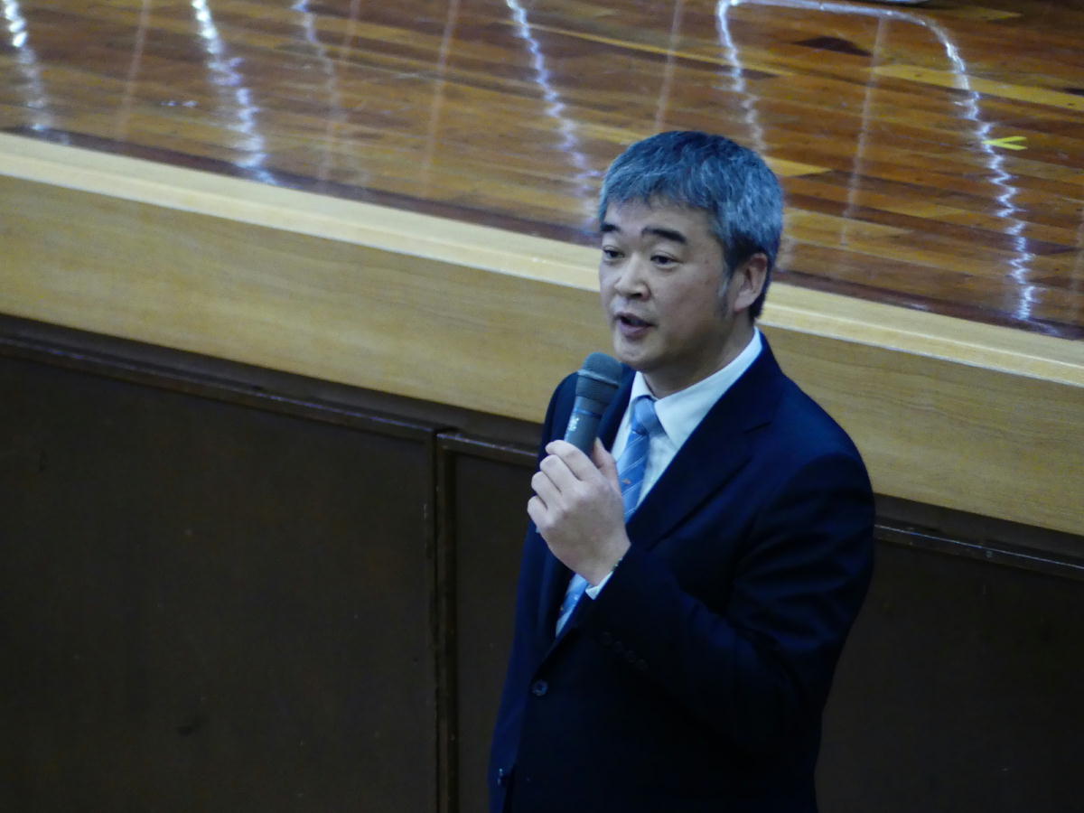 始業式では、校長先生が「自分の可能性を信じ、失敗をおそれずにチャレンジしていこう。ICT教育を積極的に進めていくのでタブレットを有効活用していこう。また、授業は予習を大切にし、復習のつもりで臨もう。平等に与えられた時間を有効活用しよう。」という話がありました。その後、教務部・進学部・生徒部の各部長の先生から、学校生活の心構えについて話がありました。