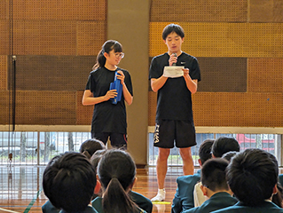 4月15日(月),中学1年生に向けて部活動紹介がありました。各部活の代表者が行った個性あふれる発表からそれぞれの部活の魅力が伝わってきました。中学1年生は,これからしばらく仮入部期間となります。自分に合う部活動をぜひ見つけてください!