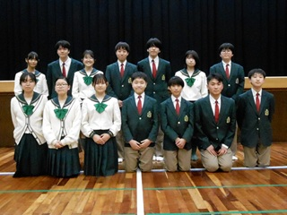 令和6年度旧生徒会執行部の皆さんは、一年間の活動を振り返りそれぞれの思いを話していました。旧生徒会長の太田悠花さんは、「たくさんの人たちに協力をして頂いたおかげで無事に任期を終えることができました。本当にありがとうございました。」と挨拶し、その表情は、達成感にみちあふれていました。