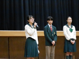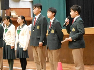 3月3日(月)、中学生徒会執行部新旧交代式が行われました。