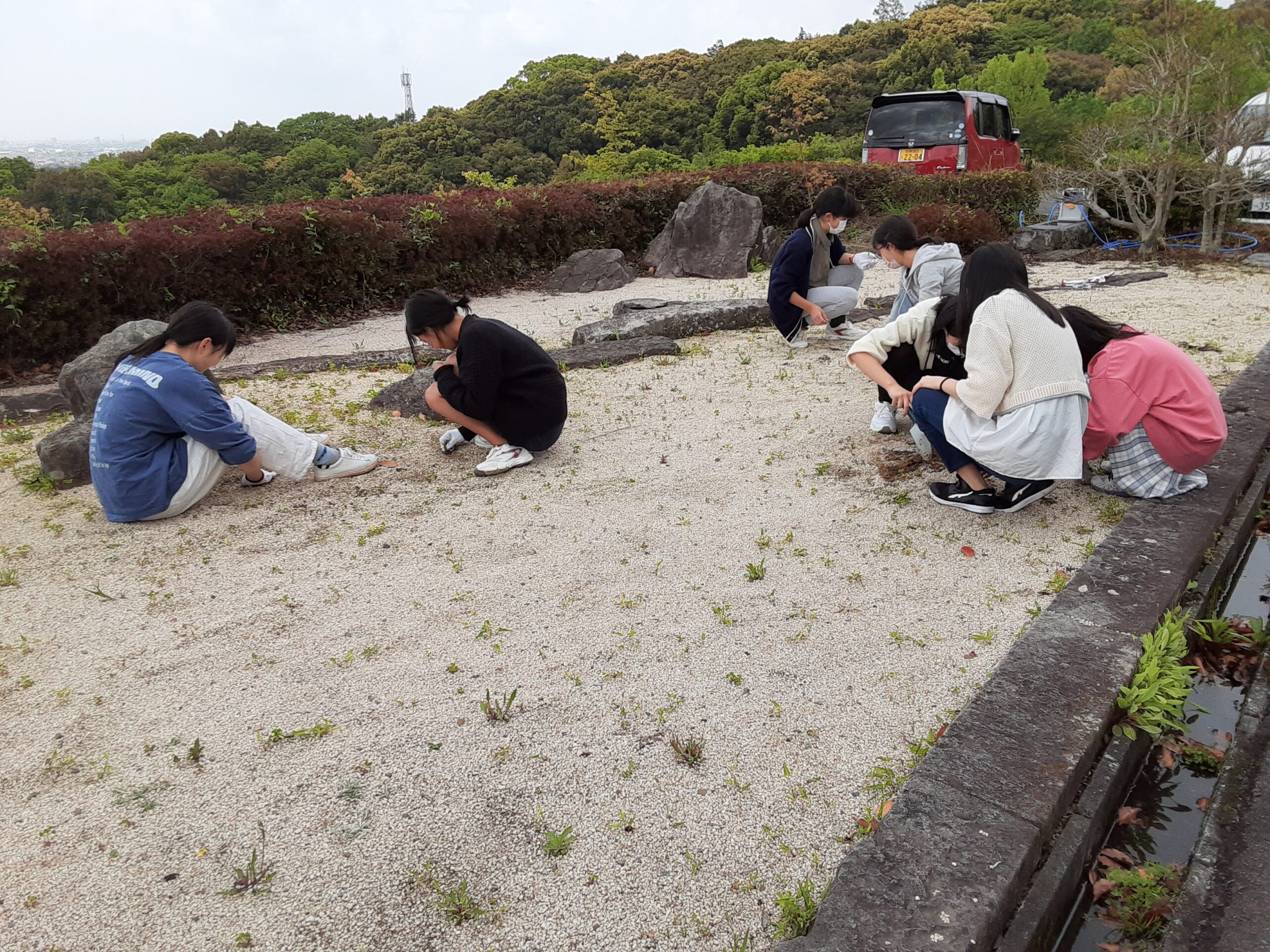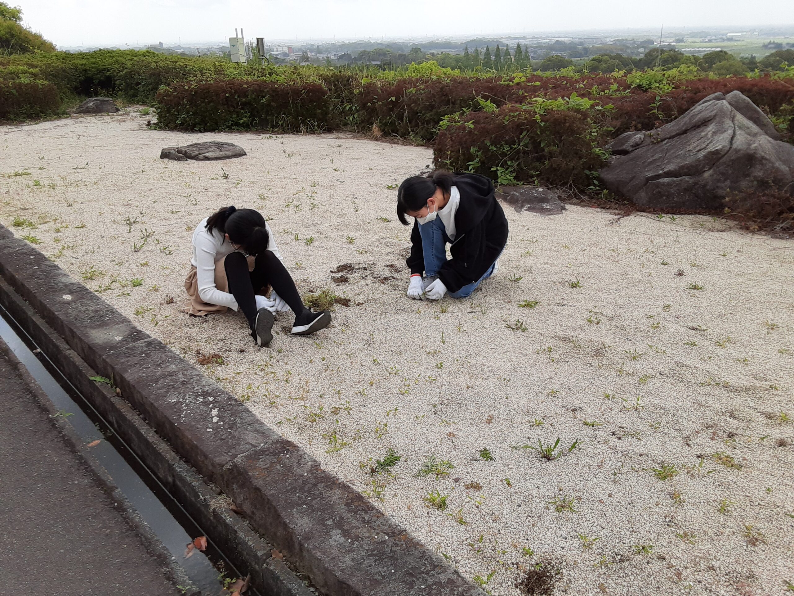 4月16日(日)、残寮していた女子寮生が、石庭の除草作業をしてくれました。