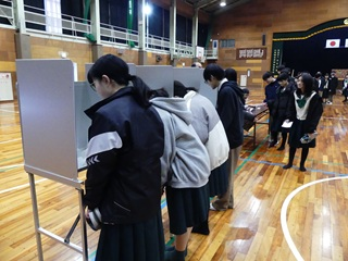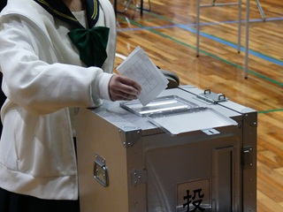 1月27日(月)、令和7年度中学生徒会長選挙が行われました。5名の候補者、そしてその応援演説者の個性あふれる演説の後、中学全校生徒が投票を行いました。全校生徒の前での演説は緊張したことだと思いますが、候補者は皆堂々と自分の思いや考えを話していました。その思いや熱意はみんなに伝わったと思います。次期中学生徒会への期待と頼もしさを感じた時間でした。選挙管理委員会による開票の結果、岩本悠佑さんが次期中学生徒会長に決定しました。(令和6年度中学生徒会長 太田悠花)