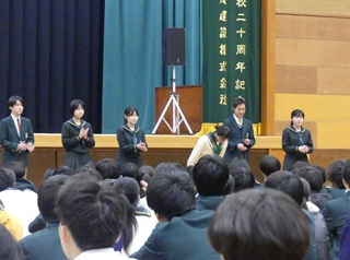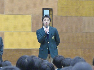 3月10日(月)、高校生徒会執行部新旧交代式が行われました。 旧執行部の一人ひとりが、1年間を振り返っての感想や反省を述べた後、新生徒会長の内田勘太さんが新執行部の紹介を行いました。 内田さんは「旧生徒会長である中山瑚大郎先輩の大きい背中を追って、それを超えてみせます。」と堂々とした意気込みを語りました。 学校に新しい風を吹かせることができるよう。新生徒会執行部は尽力していきます。 よろしくお願いします!!