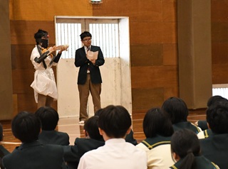 4月14日、中学部活動紹介がありました。中学部活動の各代表者が新入生に向けて、活動内容や、その部活に入ってよかったことなどを力強く伝えました。岩本中学生徒会長からも「皆さんにはぜひ部活動に参加してほしい」との話がありました。新入部員が加わり、それぞれの部活がどう変化してゆくのか、楽しみですね。