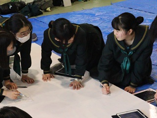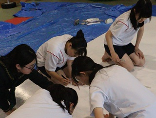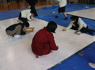 弘学館の体育祭では生徒が座る団席の上に設置する巨大な絵をパネルと呼び、そのパネルを製作する生徒たちのことをパネル係と呼んでいます。初心者もいる中、パネルのメンバーで協力し合って第壱分団は白、第弐分団は赤、第参分団は青を基調として壮大なパネルを製作しています。今年はどの分団がパネル優勝するのか、楽しみですね!
