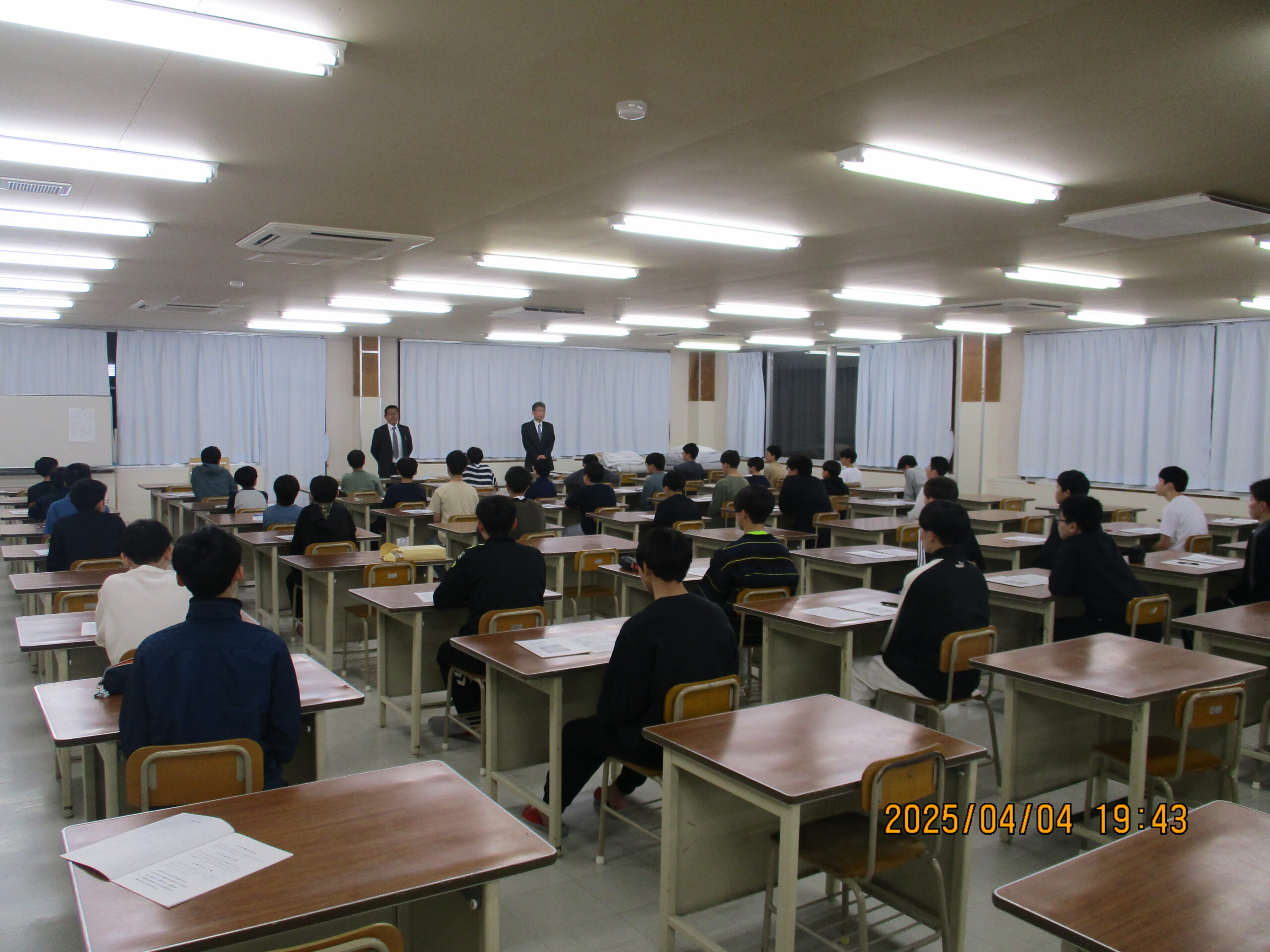 夕方からは、早速、親元を離れて、仲間たちと夕食(各自が配膳)。夜はオリエンテーションを行い、基本的な寮生活を説明(朝、起きたら居室の