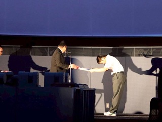10月4日(土)に武雄市の佐賀県立宇宙科学館で第75回佐賀県児童生徒理科作品展覧会の表彰式が行われ、森永敬之君(中学2年)が中学生の部で知事賞(第一位)、日本学生科学賞佐賀県最優秀賞を受賞しました。剣道部に所属している森永君がなかなか乾きにくい剣道着の生乾き臭を何とかしたいと思って考えた、中学生らしいテーマ設定でした。なお、同作品は日本学生科学賞の全国審査にも出品されます。