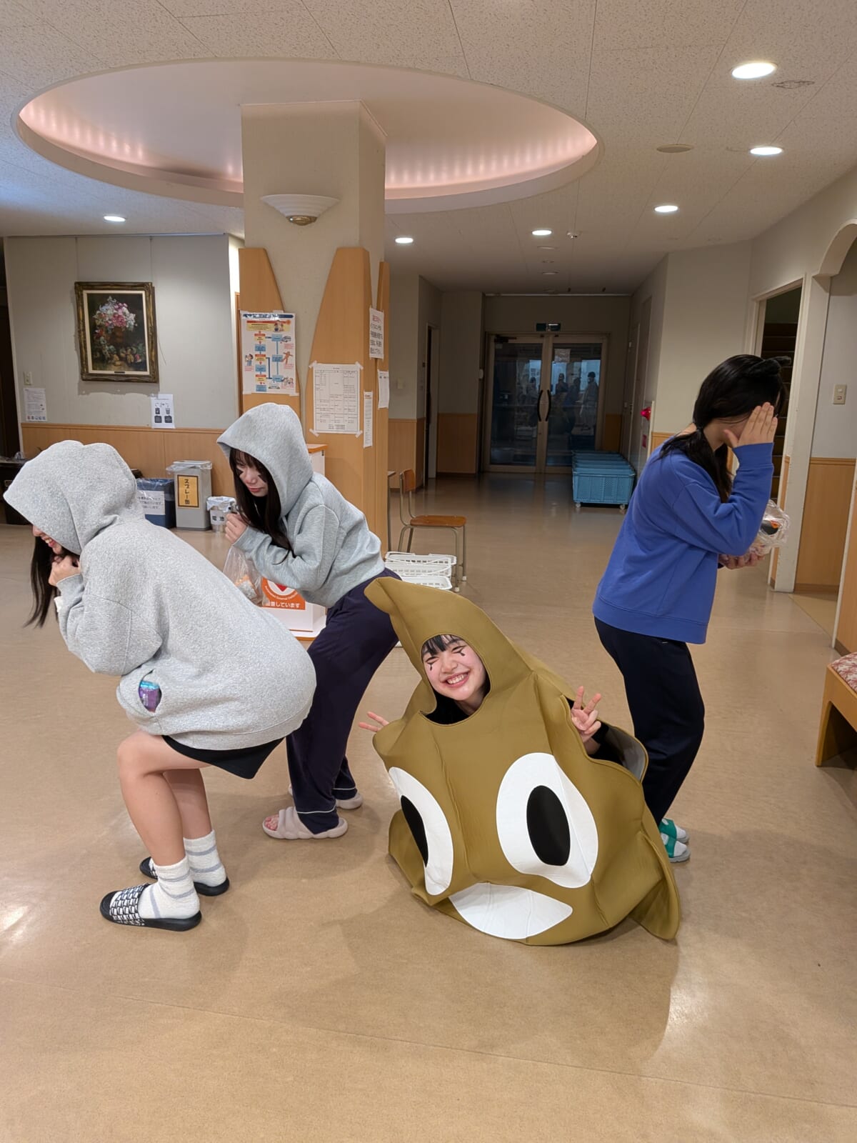 体調面を考えて、みんなで集まってレクレーションすることはできませんでしたが、仮想をして楽しそうに居室を回ってお菓子を配っていました。