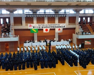 7/5(土)~6(日)に宮崎県ひなた武道館で開催された第72回全九州高等学校剣道競技大会に、本校2年生の内田勘太君が個人戦に出場しました。今年度佐賀県高校総体において、個人ベスト8まで進出し、出場権を得た大会です。1回戦の相手は、長崎県1位の選手でした。内田君は、全国トップクラスの選手を相手に臆せず、積極的に技を繰り出す堂々とした試合内容でした。しかし、時間終了間際に相手選手に一本を奪われ、そのまま時間切れ。惜しくも1回戦敗退となりました。本大会に出場できたことは、良い経験となりましたが、これも周りの方々からのサポートがあってからこそのものです。これからも、日々感謝の気持ちを忘れず、向上心をもって頑張ってほしいです。