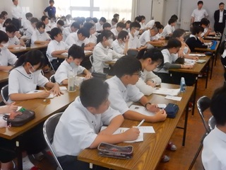 7月7日(月)1限目、中学1年生、高校1年生外進生を対象に、佐賀大学医学部長 野出孝一先生より血圧に関する講話をしていただきました。血圧が高いことによって引き起こされる病気のことや、血圧を高くしないために必要なこと、下げるために有効な食べ物のこと、自分たちの年齢での正常値などを丁寧に教えていただきました。日頃、血圧を気にしない生徒にとって、大変有意義な時間となりました。