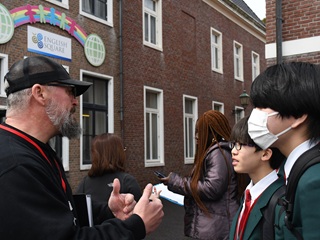 3月6日、中学2年生はハウステンボスにて英語研修を行いました。グループごとにネイティブスピーカーのコーチとの間で、空港、病院、警察などでのさまざまな場面を想定した英会話を体験しました。生徒たちの明るく積極的な態度に、スタッフの皆さんも引率教員も驚いていました。生徒からは「学校で普段習っている語句や文法を実際に使うことができた」「自分の実力が分かってよかった。賞状ももらえて嬉しかった」といった感想が聞かれました。今秋のカナダ語学研修旅行(ホームステイ)に向けて、今後さらにコミュニケーション力を高めていきます。