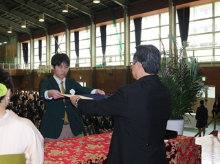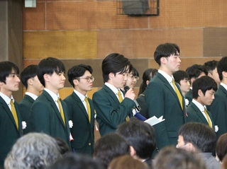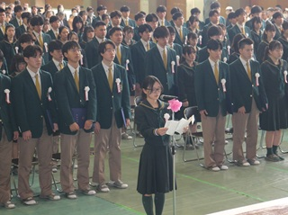 3月1日(土)、春を思わせる日差しの中、高校卒業式が執り行われました。現生徒会長中山瑚大郎さんによる送辞、卒業生代表島内琴羽さんによる答辞は派手な行事や出来事よりも日常生活への感謝が多く、コロナ禍を経験した生徒の矜持を感じました。最後の各クラスによるサプライズ挨拶も復活し、厳粛な雰囲気の中、時折涙の見られる気持ちの入った式典となりました。