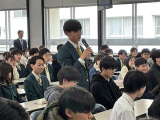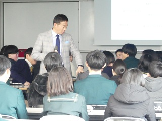 1月20日,東福岡高校ラグビー部監督である藤田雄一郎さんをお迎えし,「個を成長させる考え方」という演題でご講演いただきました。藤田さんは母校である東福岡高校でラグビー部の監督としてご活躍されており,ラグビー部を14年間に4回の全国大会優勝へと導かれました。華々しい成績であるものの,その結果を支えていたのは,「当たり前の質を高めること」「ポジティブな考え方をすること」「自分の努力で他人に喜びを与えること」という,当たり前のことにとことんこだわり,その質を高めるということでした。生徒たちはその熱い話しぶりにどんどん引き込まれて、真剣なまなざしで聞き入っていました。