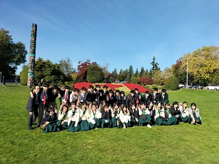 中学3年生が4泊6日のカナダ語学研修旅行に行きました。バンクーバー郊外の町でホームステイをしながら、ピーチアース州立公園やブリティッシュコロンビア大学を訪問し、アイスホッケーの試合観戦などを体験してきました。特にホストファミリーとの交流を通して、食事やトイレといった日常生活場面での日本との違いを学んだり、生徒によっては教会での行事に参加して宗教について考えたりと、さまざまな風習や価値観に触れることができました。ジェスチャーをまじえながらの英語でのコミュニケーションもたっぷり経験して、今後の生活や学習への糧を得て帰国しました。